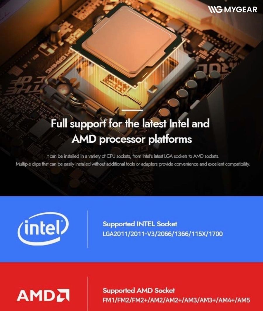Là một CPU cooler DarkFlash DV360S, sản phẩm hỗ trợ nhiều socket từ Intel LGA 2011/1700/115X cho đến AMD FM1/FM2/AM5/AM4, giúp bạn yên tâm sử dụng cho nhiều thế hệ CPU khác nhau.