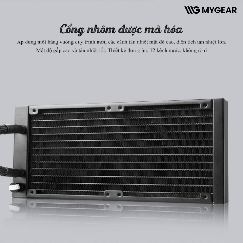 Với tone màu đen chủ đạo, kết hợp cùng vòng sáng ARGB rực rỡ, tản nhiệt nước Golden Field Icy Chill 240G ARGB mang lại cảm giác mạnh mẽ và hiện đại cho dàn PC gaming. Ống dẫn nước được bọc lưới chống gập, giúp tăng độ bền và tính linh hoạt khi lắp đặt.