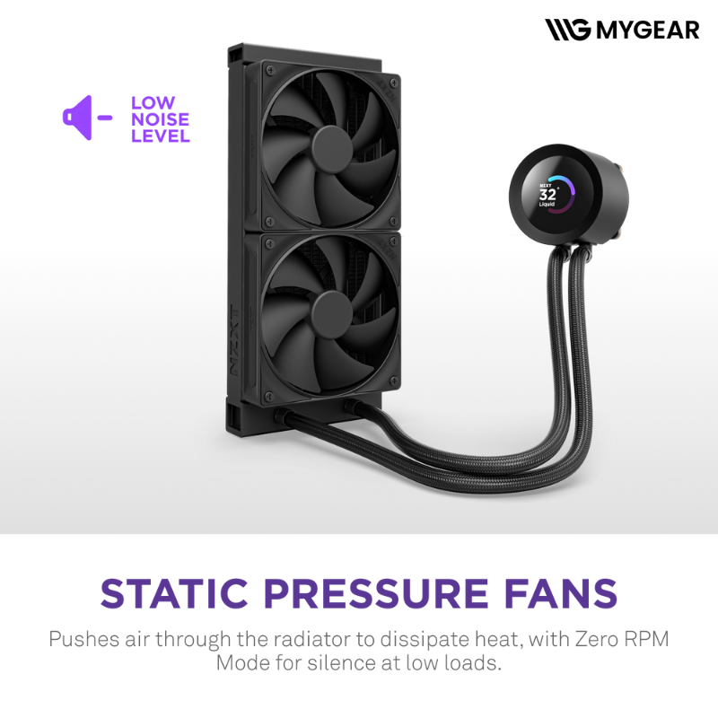 Với hai quạt tản nhiệt 120mm PWM chất lượng cao, Kraken Plus 240 dễ dàng duy trì nhiệt độ CPU ở mức an toàn ngay cả khi ép xung hoặc chạy tải nặng. Nhờ thiết kế tối ưu về luồng gió, tản nhiệt này cân bằng hoàn hảo giữa hiệu năng, độ ồn và không gian lắp đặt, lý tưởng cho case mid-tower hoặc small-form build.