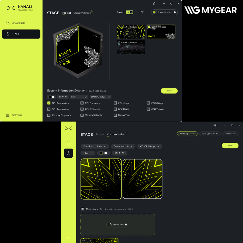 Với công nghệ bơm Asetek thế hệ 8, bộ ba quạt hiệu suất cao cùng hệ thống ARGB đồng bộ, TRYX Stage AIO Black là lựa chọn lý tưởng cho người dùng muốn kết hợp giữa hiệu năng tản nhiệt và tính trình diễn hiện đại. Điểm đặc biệt nhất của sản phẩm chính là thiết kế tản nhiệt nước màn hình cong AMOLED giúp hiển thị hình ảnh sống động ngay trên block CPU.