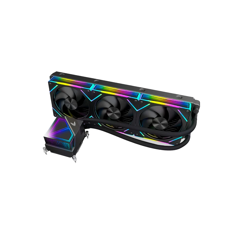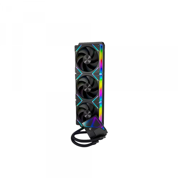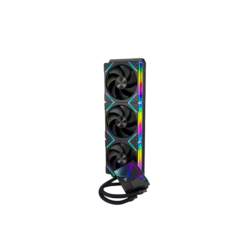 Tản nhiệt nước AIO 360mm của VSP ICE G360 Black được trang bị ba quạt 120mm với dải tốc độ từ 800 đến 1800 RPM, mỗi quạt đạt lưu lượng gió 54.6 CFM. Độ ồn quạt ≤ 32 dBA giúp hệ thống làm mát hiệu quả nhưng vẫn giữ được sự yên tĩnh cần thiết cho không gian làm việc và giải trí.