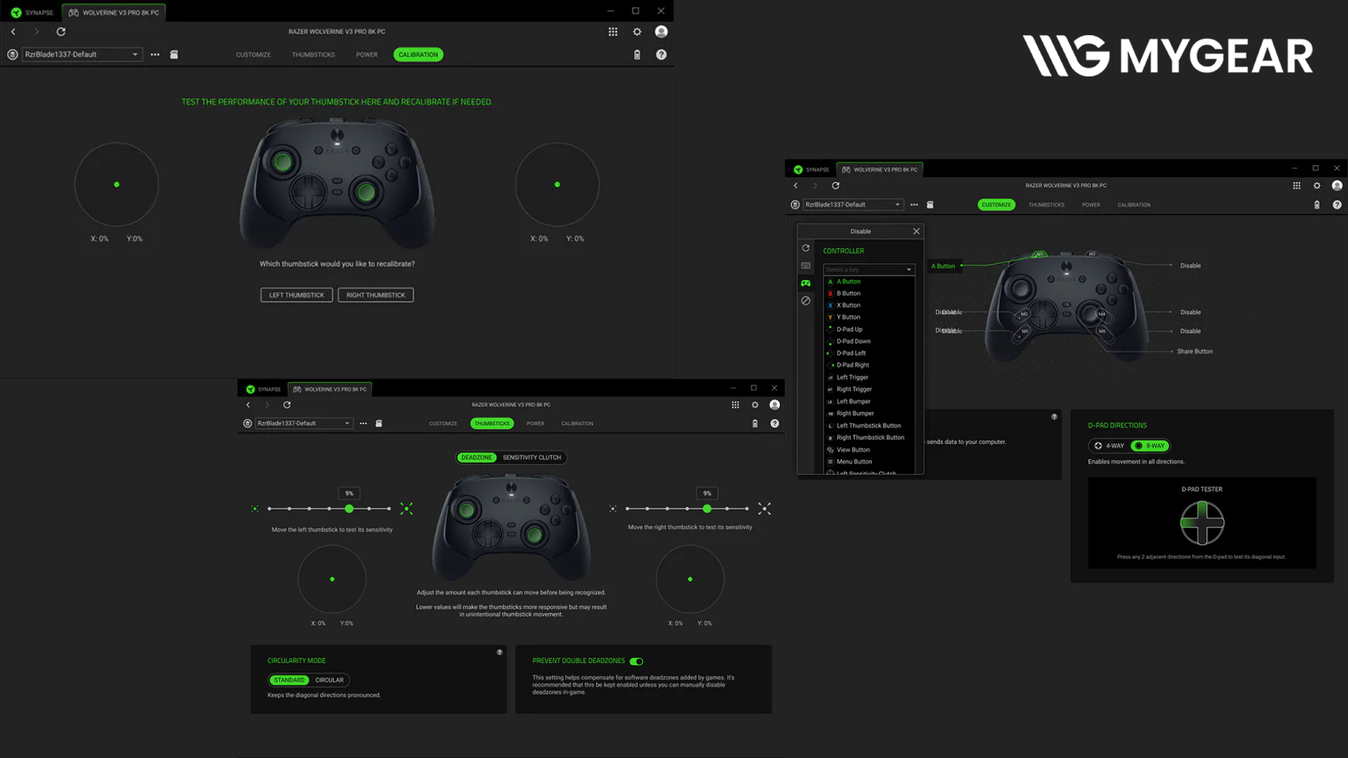 Razer Wolverine V3 Tournament Edition hỗ trợ phần mềm Razer Synapse 4, cho phép người dùng tùy chỉnh nút bấm, trigger và nhiều thiết lập khác. Phần mềm yêu cầu Windows 11 64-bit trở lên, giúp game thủ tối ưu tay cầm theo từng tựa game khác nhau.