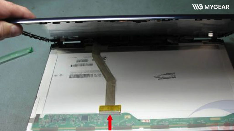 Xác định chính xác vị trí kết nối giữa cáp màn hình và mainboard. Nhẹ nhàng rút cáp cũ ra, tránh gập, xoắn hoặc kéo mạnh, vì các cáp màn hình thường rất mỏng manh và dễ hỏng.