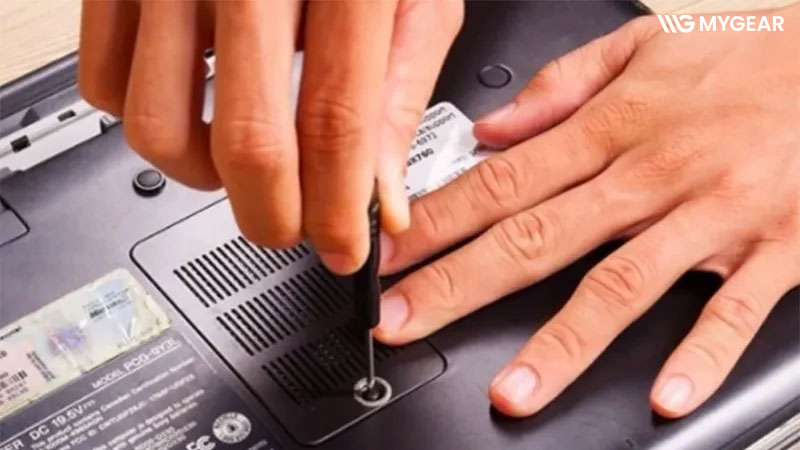 Ngoài ra nên đặt laptop trên bề mặt phẳng, sạch sẽ và đủ ánh sáng. Chuẩn bị tua vít, khay đựng ốc, khăn mềm để thao tác an toàn. Nếu có thể, dùng vòng chống tĩnh điện hoặc chạm tay vào vật kim loại để xả tĩnh điện, bảo vệ linh kiện nhạy cảm.