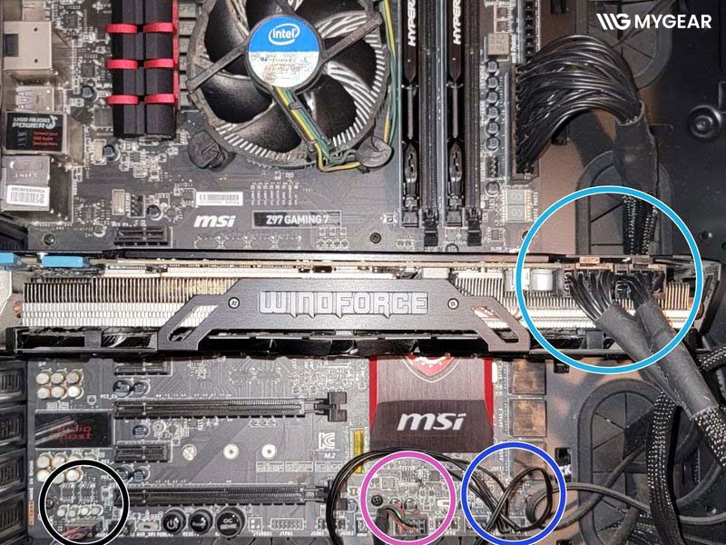 - Kết nối lại tất cả cáp màn hình và cáp nguồn vào vị trí tương ứng trên bo mạch chủ.