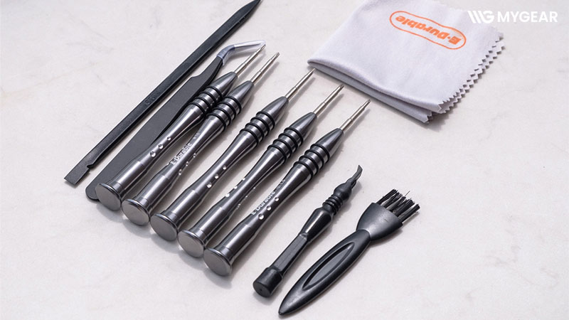 - Bộ tua vít nhỏ: Bao gồm các loại đầu dẹt, Pentalobe (ngôi sao 5 cánh) và Torx (tùy model Dell). Đây là công cụ cơ bản để tháo các ốc vít cố định màn hình và khung máy.