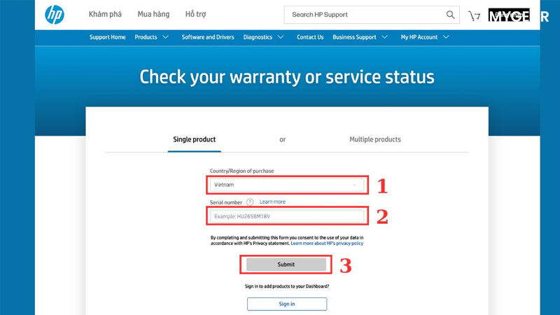 - Truy cập: support.hp.com/vn-en/checkwarranty
