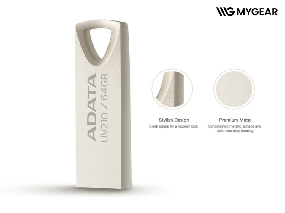 Dung lượng 64GB đáp ứng nhu cầu lưu trữ tài liệu, hình ảnh, video hoặc tập tin cá nhân. USB Adata UV210 vàng được cung cấp chính hãng tại MYGEAR, đảm bảo chất lượng, bảo hành dài hạn và uy tín.
