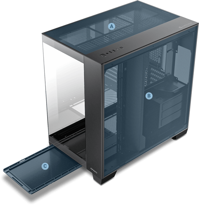 Hai mặt hông kính cường lực của Antec C8 Full Tower Black không chỉ tăng tính thẩm mỹ mà còn giúp bạn dễ dàng quan sát và khoe hệ thống bên trong. Chất liệu kính chống trầy xước, chống mờ theo thời gian, mang đến góc nhìn sắc nét cho các build đèn LED RGB hoặc watercooling custom cao cấp. Hệ thống tháo lắp kính dễ dàng cũng giúp việc vệ sinh, nâng cấp linh kiện trở nên thuận tiện hơn rất nhiều.