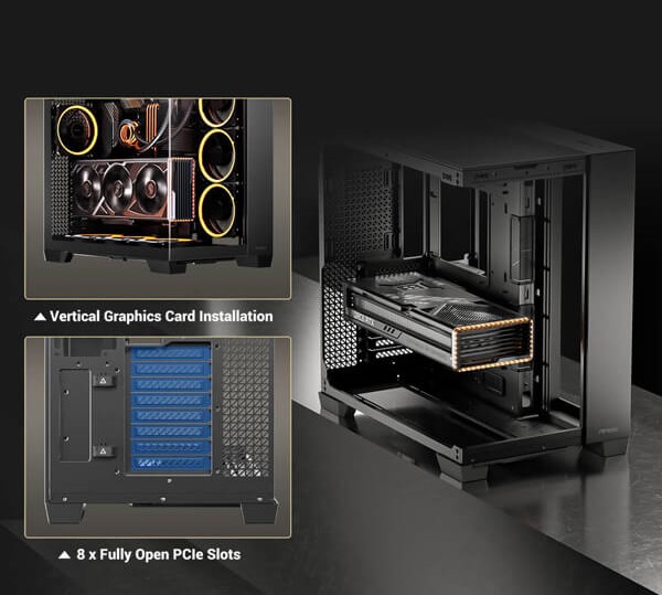 Là dòng vỏ case full tower Antec cao cấp, C8 Black cung cấp không gian lý tưởng cho mọi loại phần cứng. Từ mainboard ITX, Micro-ATX, ATX và cả E-ATX cho tới card đồ họa khủng như RTX 4090, tất cả đều có thể lắp đặt thoải mái mà không lo giới hạn kích thước. Không gian bên trong còn được tối ưu hóa để lắp nguồn ATX full size, nhiều ổ lưu trữ và hệ thống làm mát đa dạng, phù hợp cho cả build chơi game lẫn làm việc chuyên sâu.