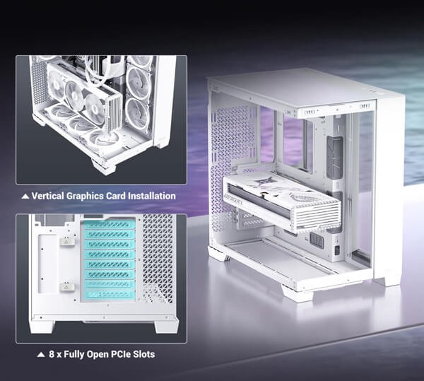 Trong thời đại các card đồ họa cao cấp ngày càng lớn và mạnh mẽ như RTX 5090, RX 7900 XTX,... việc lựa chọn một vỏ case có thể chứa được GPU dài là vô cùng quan trọng. Với không gian hỗ trợ GPU dài lên đến 440mm, case Antec C8 White GPU dài cho phép người dùng lắp các dòng card flagship mà không cần lo lắng về giới hạn kích thước. Ngoài ra, sản phẩm còn có giá đỡ GPU đi kèm, giúp cố định card tránh bị xệ theo thời gian.