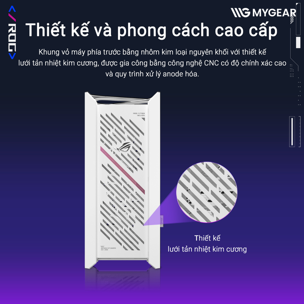 Vỏ case không chỉ là lớp bảo vệ linh kiện mà còn là điểm nhấn thẩm mỹ cho toàn bộ dàn máy. Vỏ case ASUS ROG Strix Helios II White Edition là lựa chọn tối ưu cho các game thủ và người dùng yêu cầu sự hoàn hảo từ thiết kế đến hiệu năng. Phiên bản trắng mang đến vẻ ngoài sang trọng, tinh tế, dễ phối hợp với các linh kiện ARGB hoặc các bộ quạt RGB tone sáng.