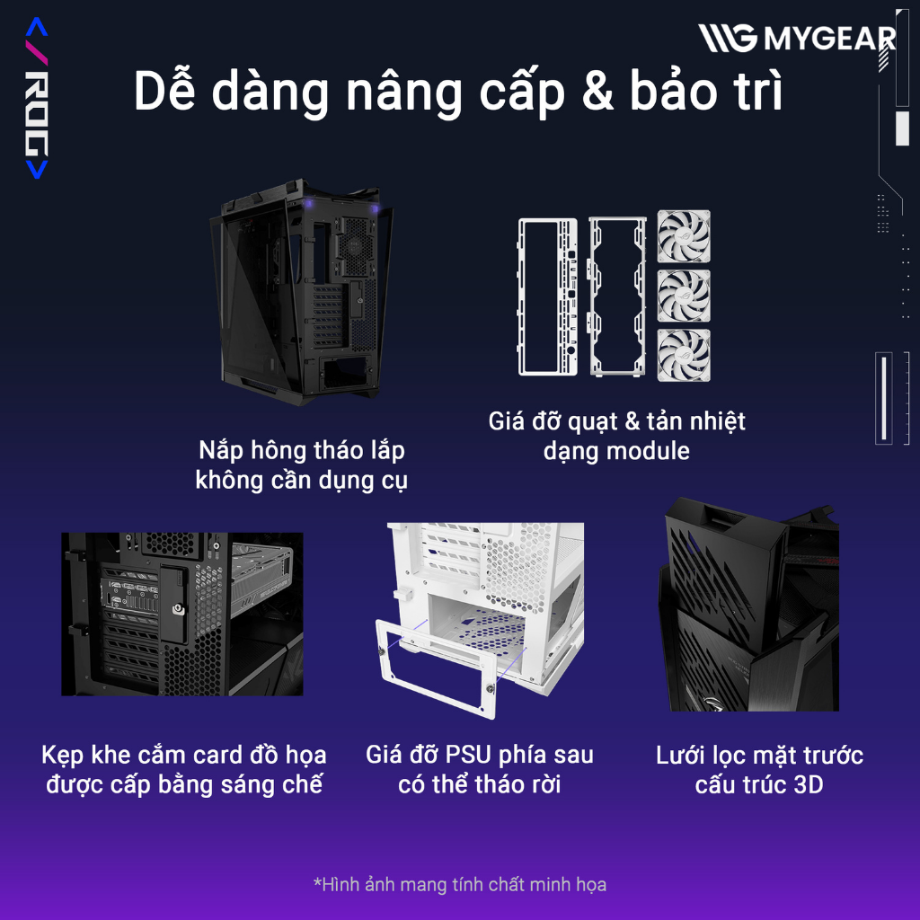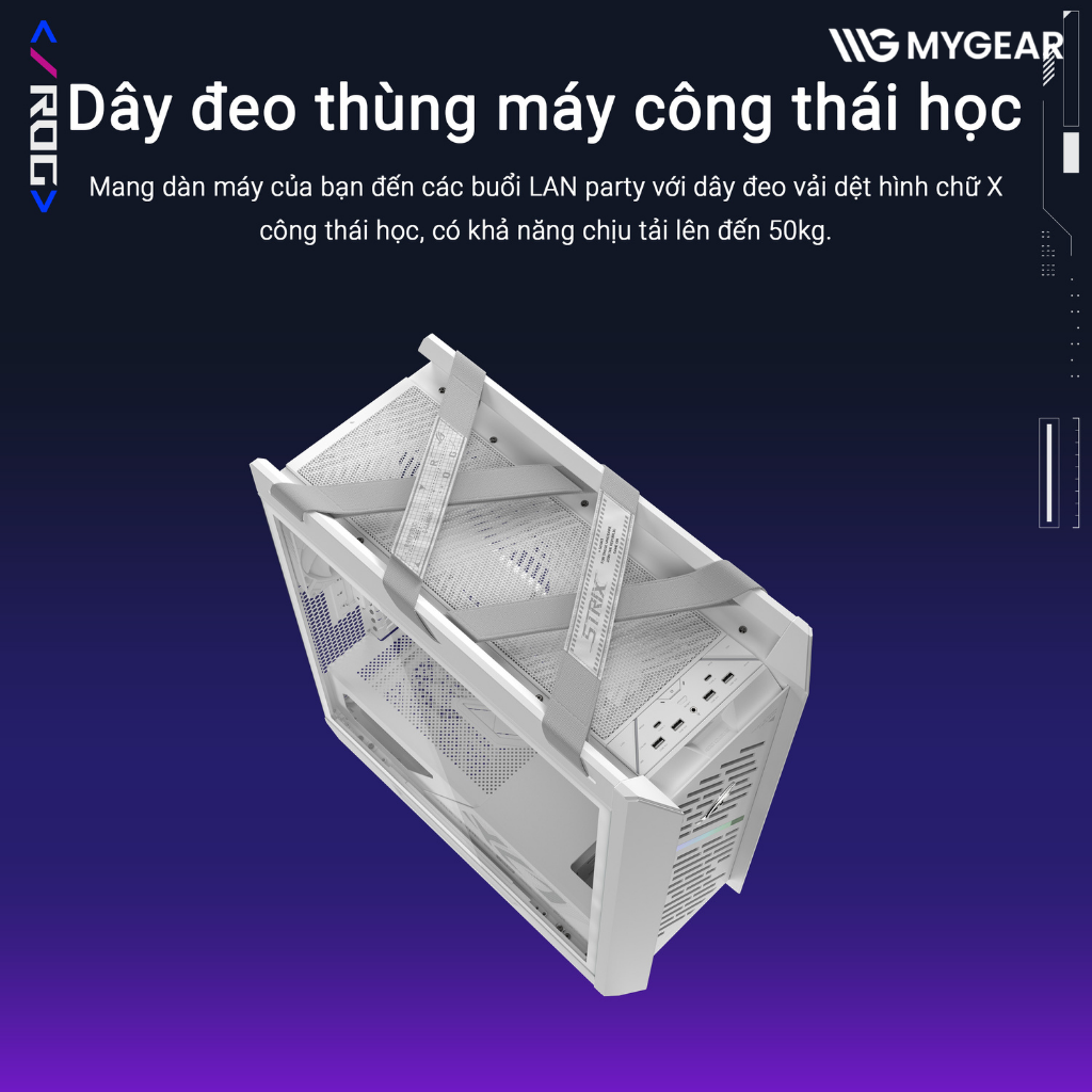 Với kính cường lực mặt trước, trái và phải, vỏ máy tính ASUS ROG trắng tạo điểm nhấn ấn tượng, phối hợp dễ dàng với các fan ARGB hoặc linh kiện tone trắng. Tại MYGEAR, người dùng có thể mua vỏ case ROG Helios II White, kết hợp quạt ARGB, tản nhiệt nước, RAM RGB, card màn hình và CPU cao cấp để xây dựng dàn máy PC gaming hoàn thiện, đồng bộ và đẳng cấp.