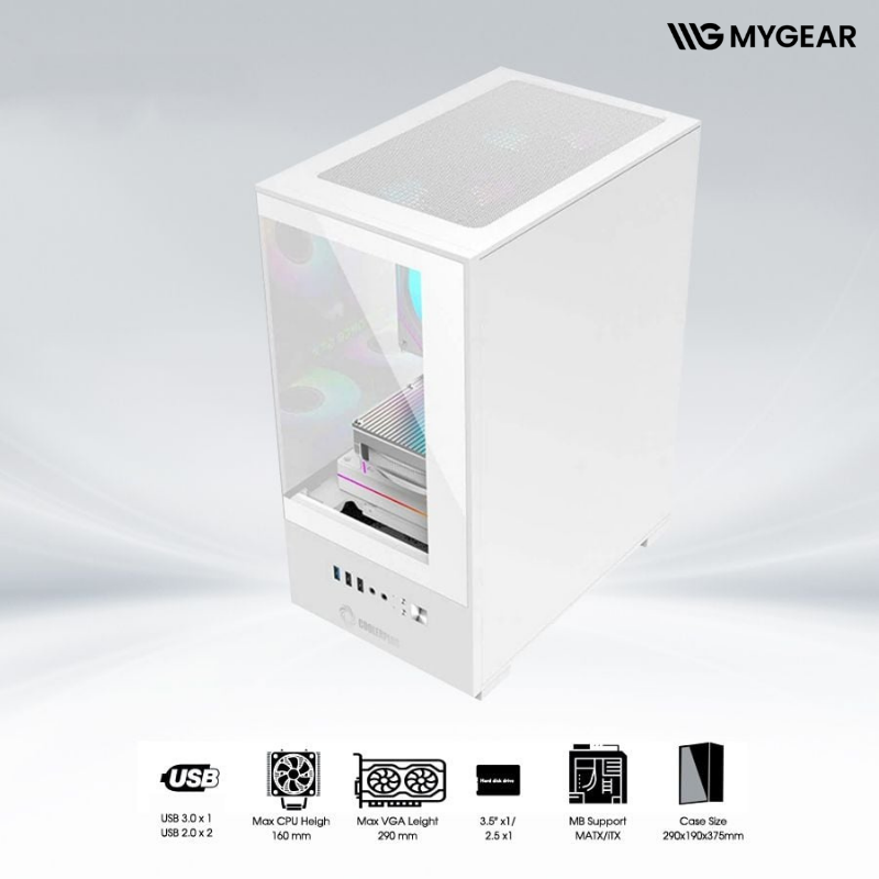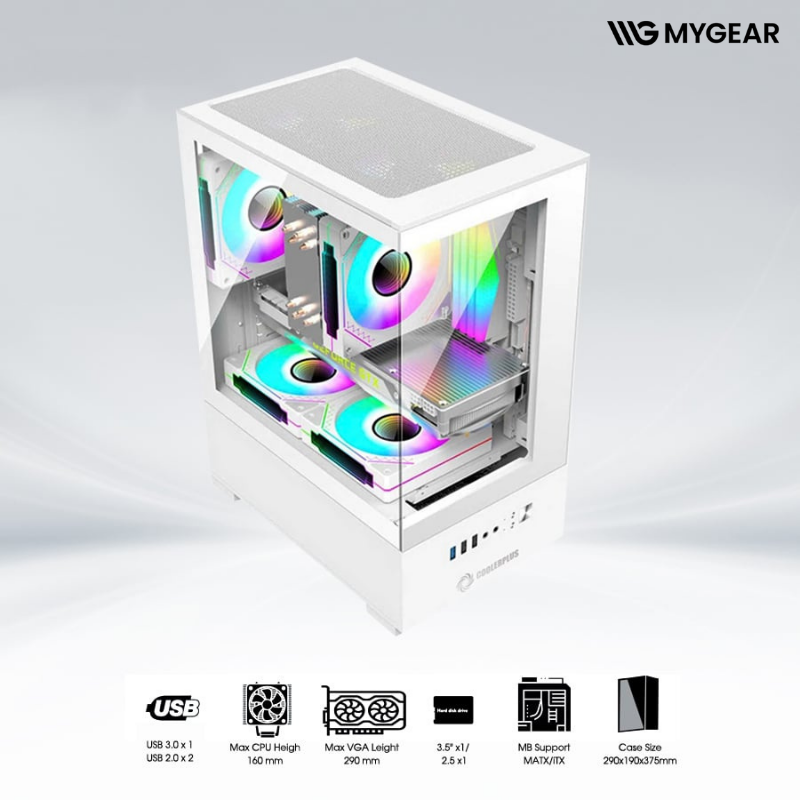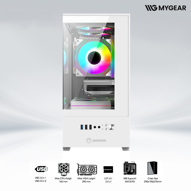 MYGEAR cung cấp đầy đủ linh kiện đi kèm như quạt RGB, tản nhiệt nước, RAM, card màn hình, giúp hoàn thiện một hệ thống đồng bộ, đẹp mắt và tối ưu hiệu năng với case CoolerPlus CPC-EX32 White.