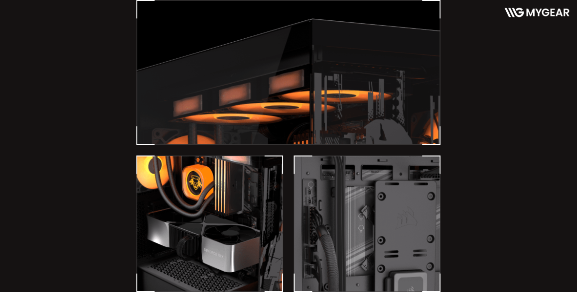Toàn bộ mặt bên và mặt trên của case được thiết kế dạng lưới (mesh) kết hợp với hệ thống hút gió và thoát khí khoa học, đảm bảo airflow lưu thông hiệu quả từ trước ra sau, từ dưới lên trên. Case hỗ trợ tối đa 10 quạt 120mm và tản nhiệt nước 360mm ở mặt bên hoặc trên. Dù bạn sử dụng AIO hay tản nhiệt nước custom, Corsair 3500X đều có thể đáp ứng mượt mà.