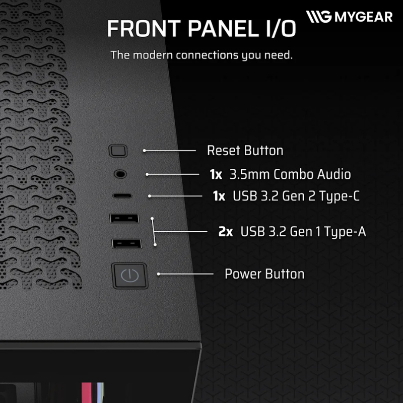 | Cổng I/O phía trước | 1x USB 3.2 Gen 2 Type-C, 2x USB 3.2 Gen 1 Type-A, 1x Audio Combo Jack |