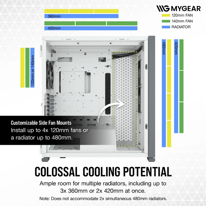 | Hỗ trợ Radiator | 120mm, 140mm, 240mm, 280mm, 360mm, 420mm, 480mm |