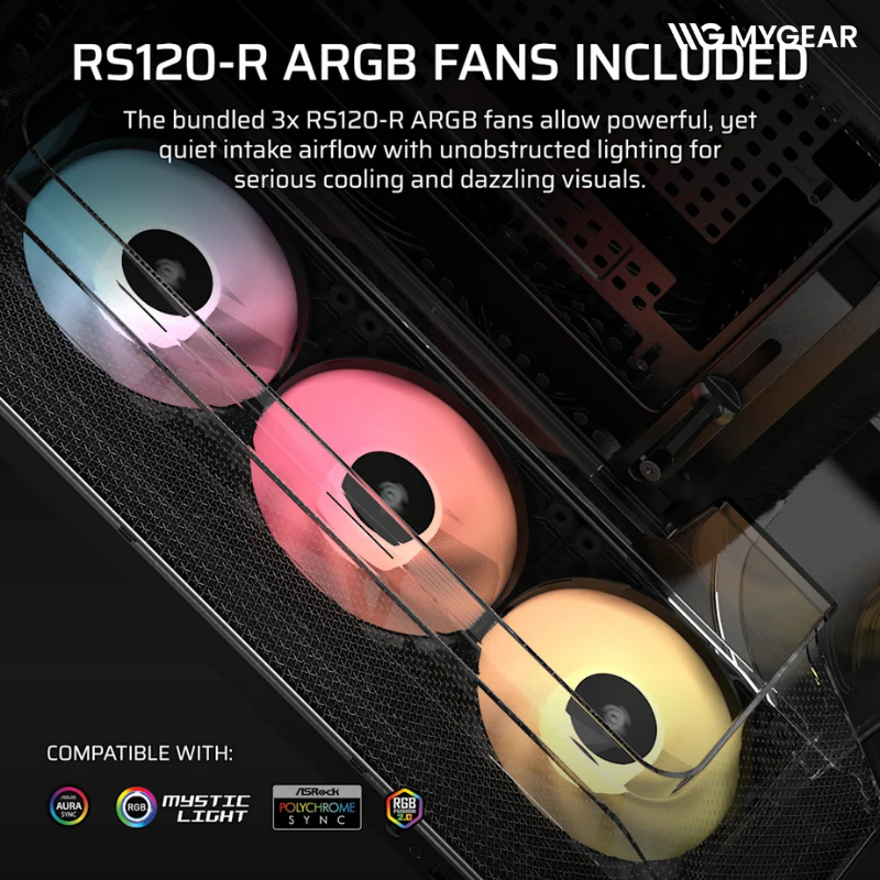 | Quạt đi kèm | 3 x RS-R ARGB Series (120mm Reverse PWM ARGB fans) |