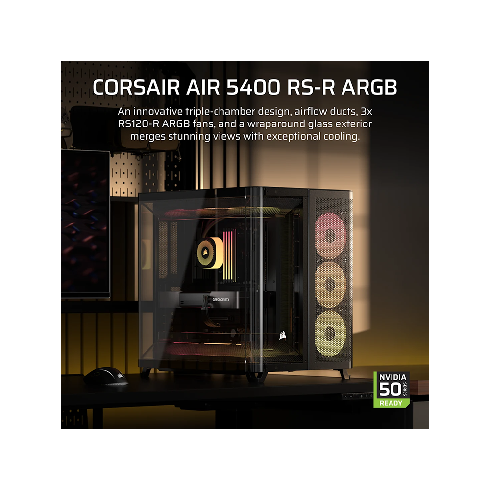 Vỏ Case Corsair AIR 5400 RS-R ARGB Mid-Tower Triple Chamber Black