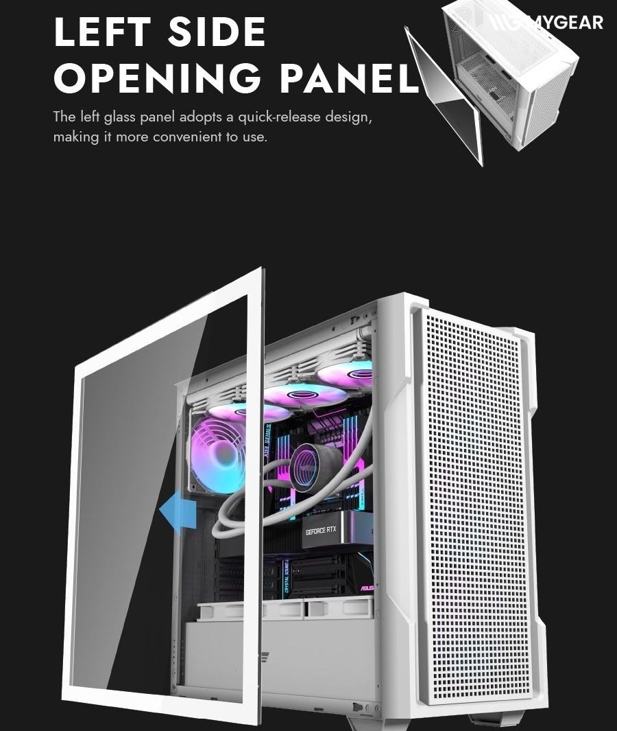 Với không gian rộng, case DarkFlash DS900 ATX White dễ dàng chứa được card đồ họa cao cấp như RTX 5090, cũng như hỗ trợ tản nhiệt AIO và custom water cooling. Điều này mang đến sự linh hoạt cho cả game thủ lẫn người làm đồ họa chuyên nghiệp.