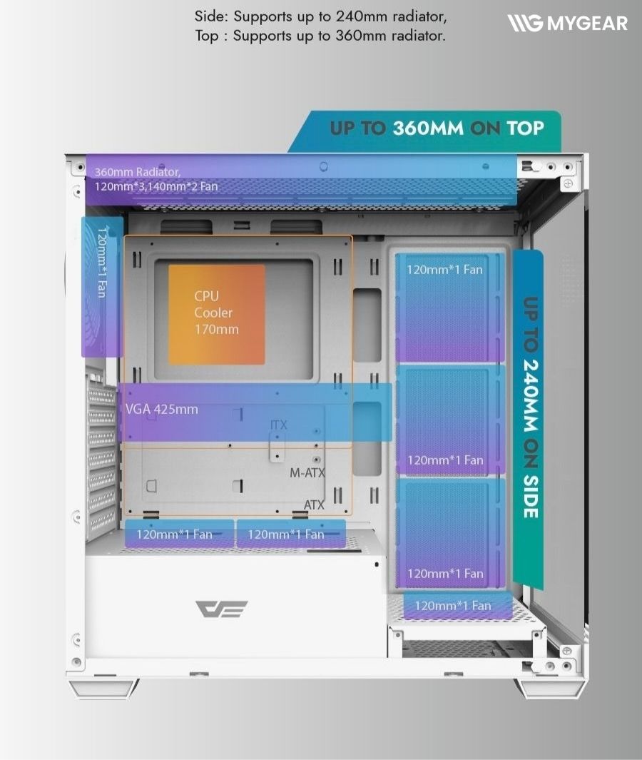 Là một case gaming ATX DarkFlash White, sản phẩm hỗ trợ nhiều chuẩn mainboard như ITX, Micro-ATX và cả ATX, giúp người dùng linh hoạt lựa chọn phần cứng. Đây là điểm cộng cho những ai muốn nâng cấp hệ thống trong tương lai mà không lo bị giới hạn không gian.