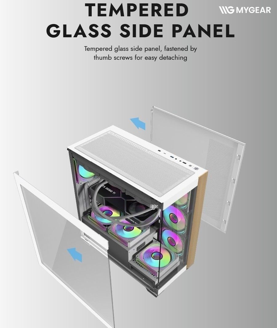 Vỏ case DS900W trắng là sự kết hợp giữa tính thẩm mỹ và hiệu suất, đặc biệt phù hợp cho những ai yêu thích phong cách setup tối giản, sạch sẽ và muốn phô diễn toàn bộ linh kiện bên trong qua tấm kính cường lực trong suốt.