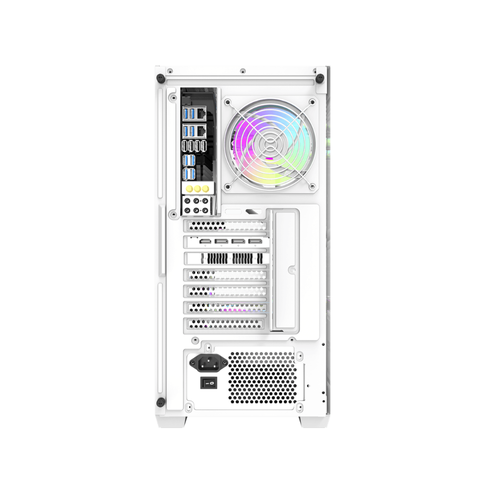 Phiên bản vỏ case DarkFlash DS900W trắng mang đến vẻ ngoài tinh tế, phù hợp với các bộ PC tông màu trắng hoặc phong cách setup RGB. Mặt trước và bên hông là kính cường lực giúp người dùng dễ dàng khoe dàn linh kiện cao cấp, biến bộ máy trở thành điểm nhấn trong không gian làm việc hoặc góc gaming.