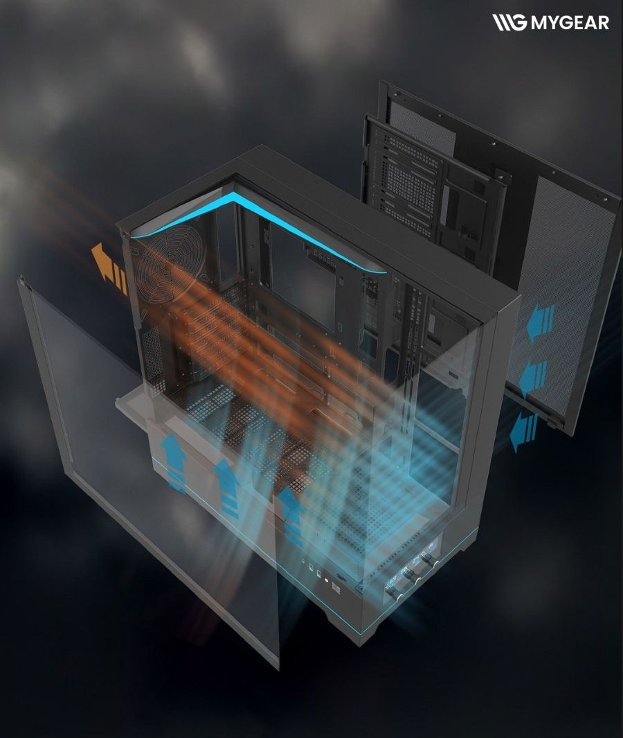 Case gaming ATX DarkFlash được thiết kế tối ưu airflow, hỗ trợ lắp nhiều quạt tản nhiệt và radiator. Nhờ vậy, hệ thống luôn vận hành mát mẻ, ổn định, ngay cả khi bạn chạy nhiều tác vụ nặng trong thời gian dài.