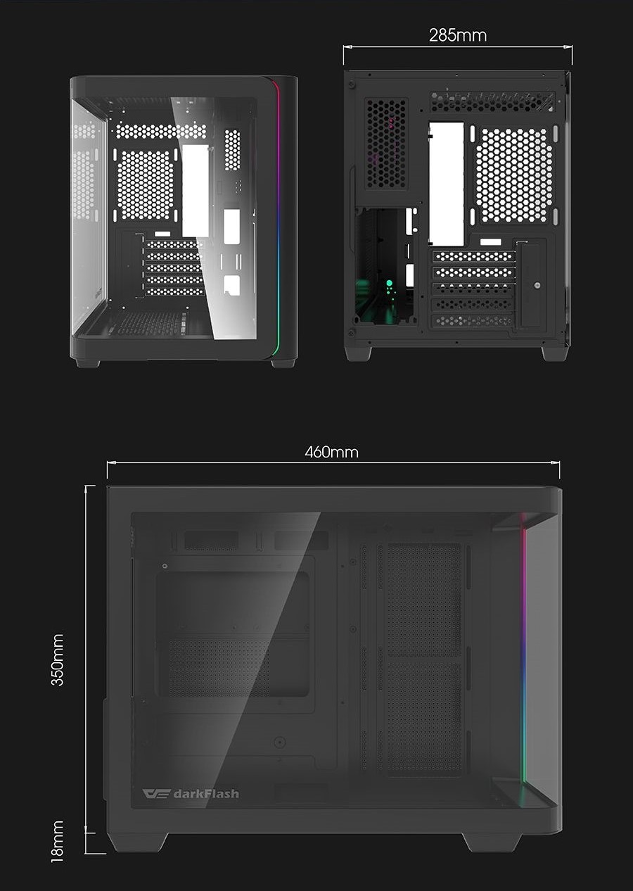 Case DarkFlash L285M M-ATX sở hữu kích thước nhỏ gọn lý tưởng cho không gian hạn chế như bàn học, phòng ngủ hay văn phòng cá nhân. Tuy vậy, nhờ thiết kế thông minh, sản phẩm vẫn đảm bảo không gian lắp đặt linh kiện thoải mái, hỗ trợ các loại mainboard M-ATX và Mini-ITX phổ biến.