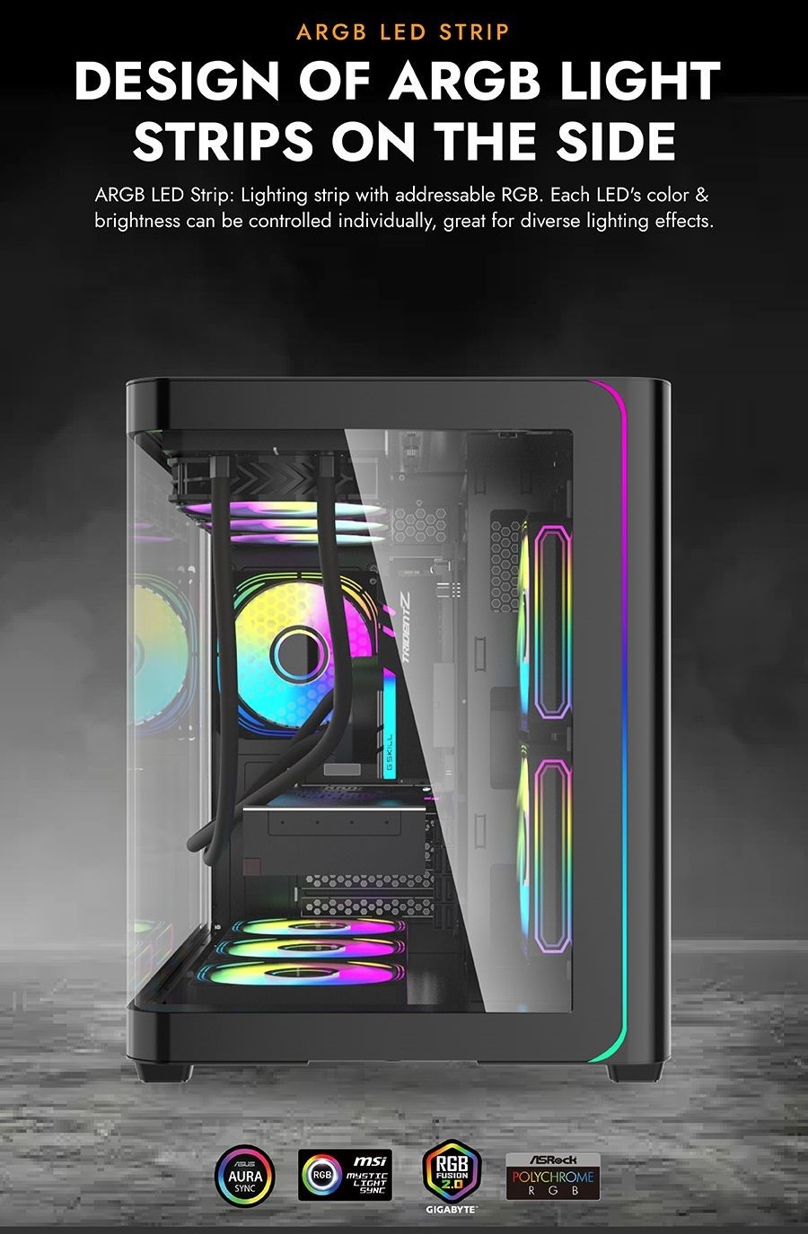 | Tính năng đặc biệt | Kính cong, ARGB lighting, Back-connect motherboard |