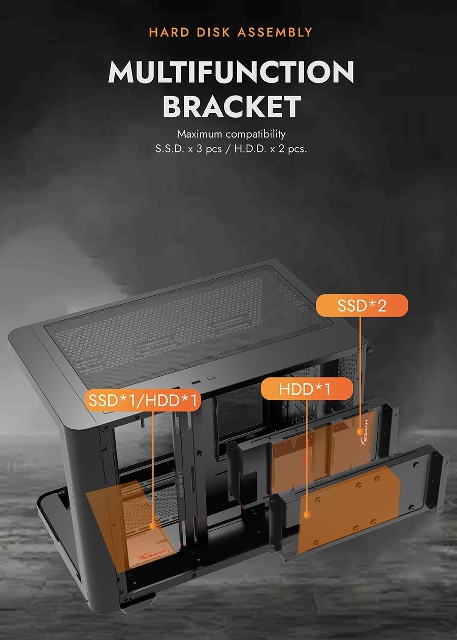 Dù nhỏ gọn nhưng vỏ case DarkFlash L285M vẫn hỗ trợ card đồ họa dài lên đến 445mm, tản CPU cao đến 160mm và nguồn ATX chuẩn dài 180mm, rất phù hợp để build cấu hình gaming tầm trung đến cao. Ngoài ra, sản phẩm hỗ trợ 3 khay HDD 3.5” và 2 khay SSD 2.5”, đảm bảo không gian lưu trữ đủ cho mọi nhu cầu.