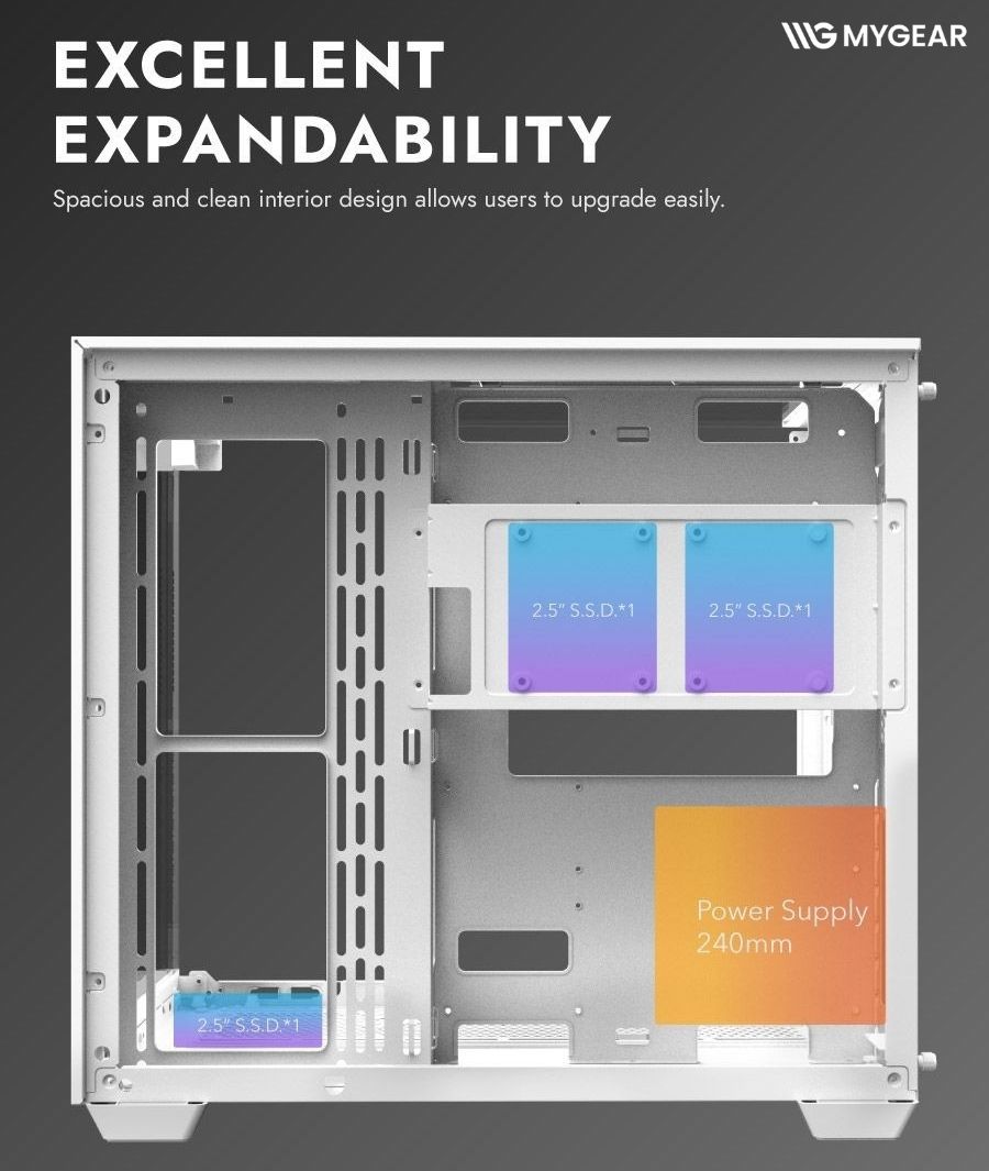 Case DarkFlash TH285 ATX White cho phép lắp đặt card đồ họa dài, tản nhiệt nước AIO và nhiều ổ cứng SSD hay HDD cùng lúc. Đây là ưu điểm lớn với người dùng thích build PC mạnh mẽ hoặc nâng cấp linh kiện trong tương lai.