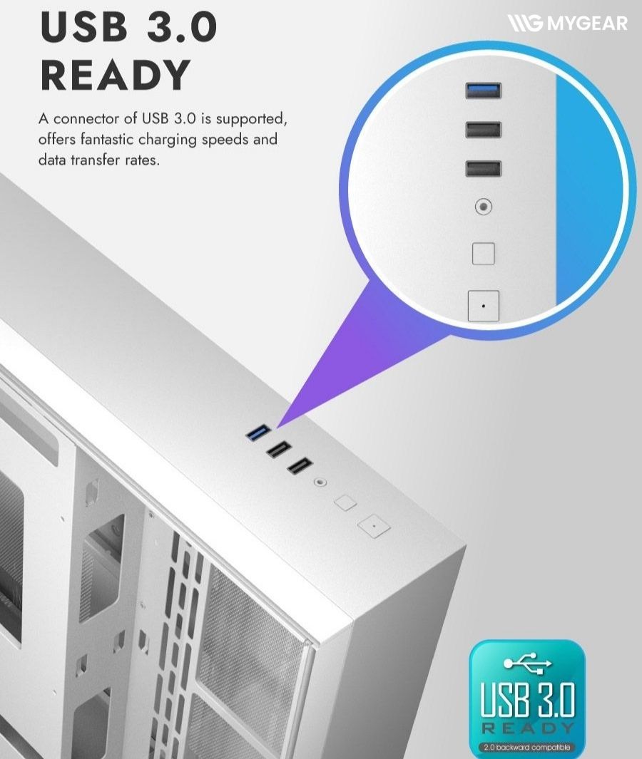 Trên panel I/O, case DarkFlash TH285 ATX White được tích hợp đầy đủ cổng USB, jack âm thanh, giúp việc kết nối tai nghe, USB, bàn phím cơ, chuột gaming trở nên đơn giản và nhanh chóng.