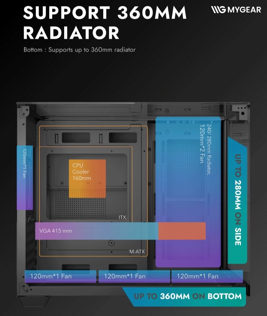 Đừng để kích thước đánh lừa bạn, DarkFlash TH285M mATX vẫn hỗ trợ lắp card đồ họa full-size, nhiều ổ cứng SSD hoặc HDD và thậm chí cả tản nhiệt nước AIO. Điều này biến sản phẩm trở thành một lựa chọn hoàn hảo cho các dàn PC gaming mini hoặc dàn máy làm việc hiệu năng cao.