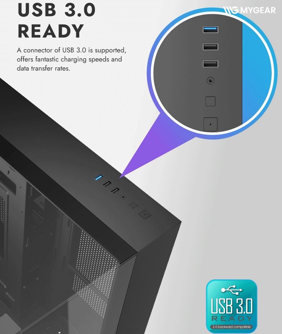 Trên panel điều khiển, case gaming DarkFlash TH285M được trang bị đầy đủ cổng USB, audio, giúp người dùng dễ dàng kết nối thiết bị ngoại vi như tai nghe, bàn phím cơ, chuột gaming một cách tiện lợi.