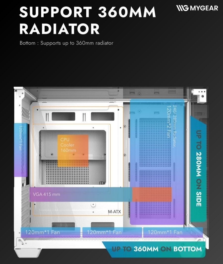 Dù nhỏ gọn, DarkFlash TH285M mATX White vẫn hỗ trợ card đồ họa full-size, nhiều ổ cứng SSD hay HDD và cả tản nhiệt nước AIO. Đây là một điểm cộng lớn cho người dùng muốn build dàn máy mạnh mẽ trong không gian giới hạn.