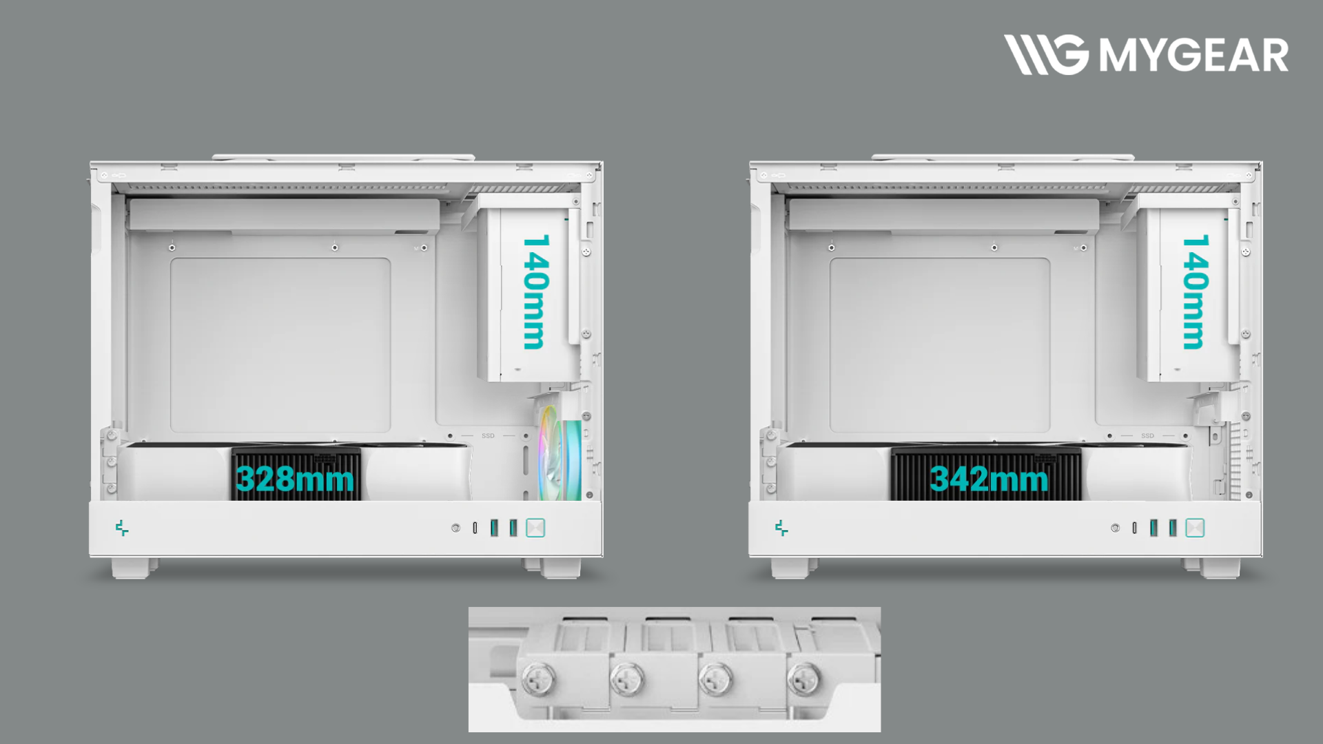 | Chiều dài GPU tối đa | 342 mm (328 mm với quạt trước) |