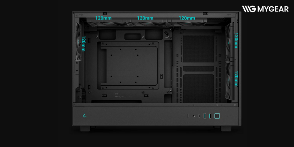 Vỏ case PC DeepCool CH260 có khả năng lắp tối đa 6 quạt làm mát (trước, trên, sau) hoặc hệ thống tản nhiệt nước 360mm, giúp duy trì nhiệt độ linh kiện luôn ổn định ngay cả khi chơi game nặng.