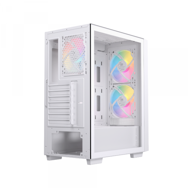 Vỏ case Einarex P100 RGB White sở hữu tone trắng tinh tế, kết hợp kính cường lực trong suốt bên hông, tạo điểm nhấn cho hệ thống PC. Hiệu ứng ánh sáng RGB từ 3 quạt tích hợp giúp build PC trở nên sống động, nổi bật trong mọi setup gaming.