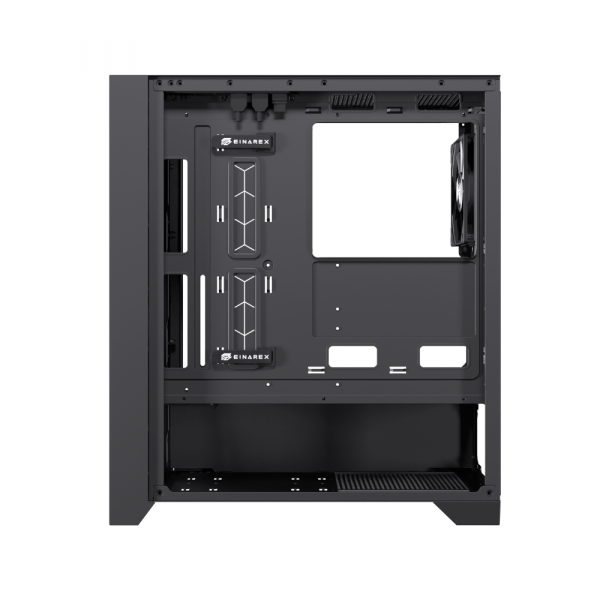 Case ATX EINAREX P600 đi kèm 1 quạt non-ARGB phía sau, hỗ trợ lắp thêm quạt phía trước 3 × 120 mm / 3 × 140 mm; trên 2 × 120 mm / 2 × 140 mm; đáy 2 × 120 mm; sau 1 × 120 mm / 1 × 140 mm. Khả năng hỗ trợ radiator phía trước 360mm, trên 240mm, sau 120mm, giúp build PC luôn mát mẻ, ổn định hiệu năng khi chơi game hoặc render.