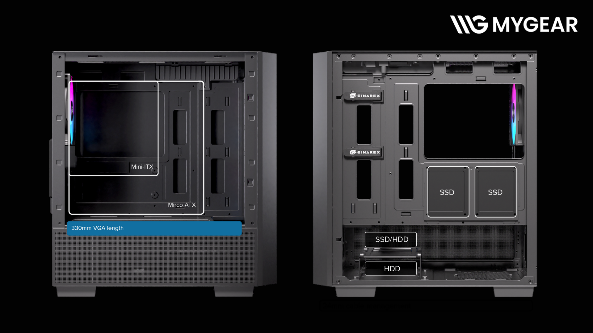 Tại MYGEAR, bạn có thể kết hợp vỏ case Einarex PM150 RGB Black với quạt ARGB bổ sung, tản nhiệt nước, RAM RGB, GPU và PSU để tạo hệ thống đồng bộ, mạnh mẽ và thẩm mỹ.