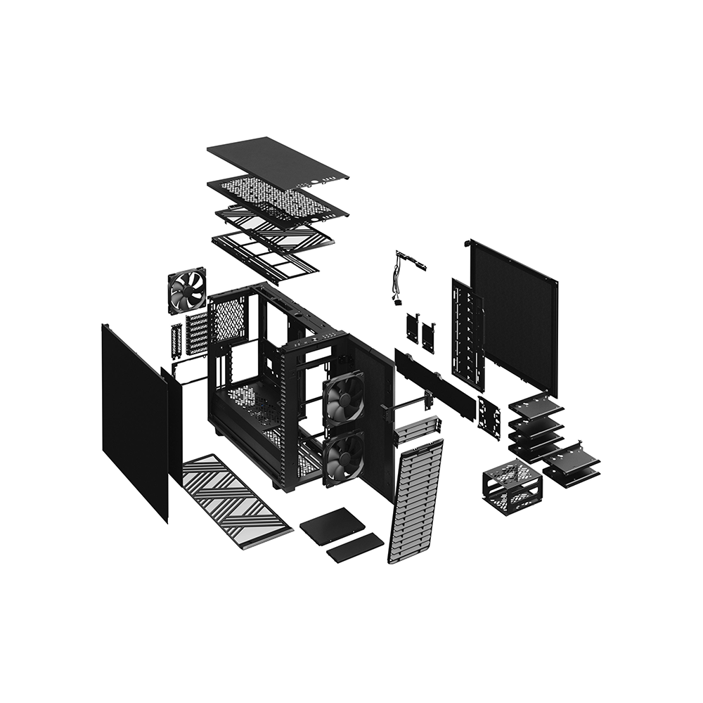 Vỏ case Fractal Design Define 7 Black Solid cho cảm giác chắc chắn, cao cấp và rất yên tĩnh. Khung thép dày, lớp cách âm hiệu quả và khả năng đi dây gọn gàng giúp hệ thống vận hành ổn định ngay cả khi chạy full load trong thời gian dài.