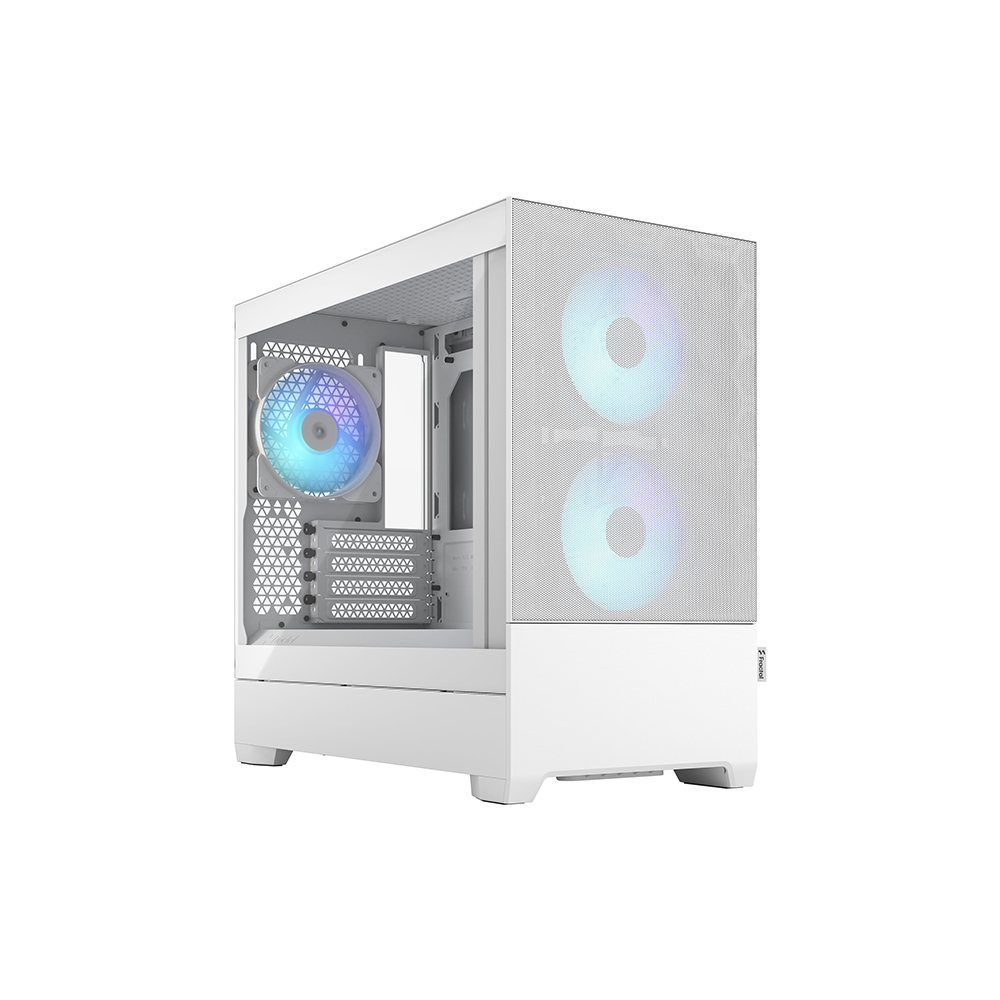 Vỏ case được trang bị sẵn 3 quạt Aspect 12 RGB 120mm, gồm 2 quạt trước và 1 quạt sau. Hệ thống quạt giúp Fractal Design Pop Mini Air trắng vận hành mát mẻ ngay từ khi build, đồng thời tạo hiệu ứng RGB nổi bật cho bộ PC.