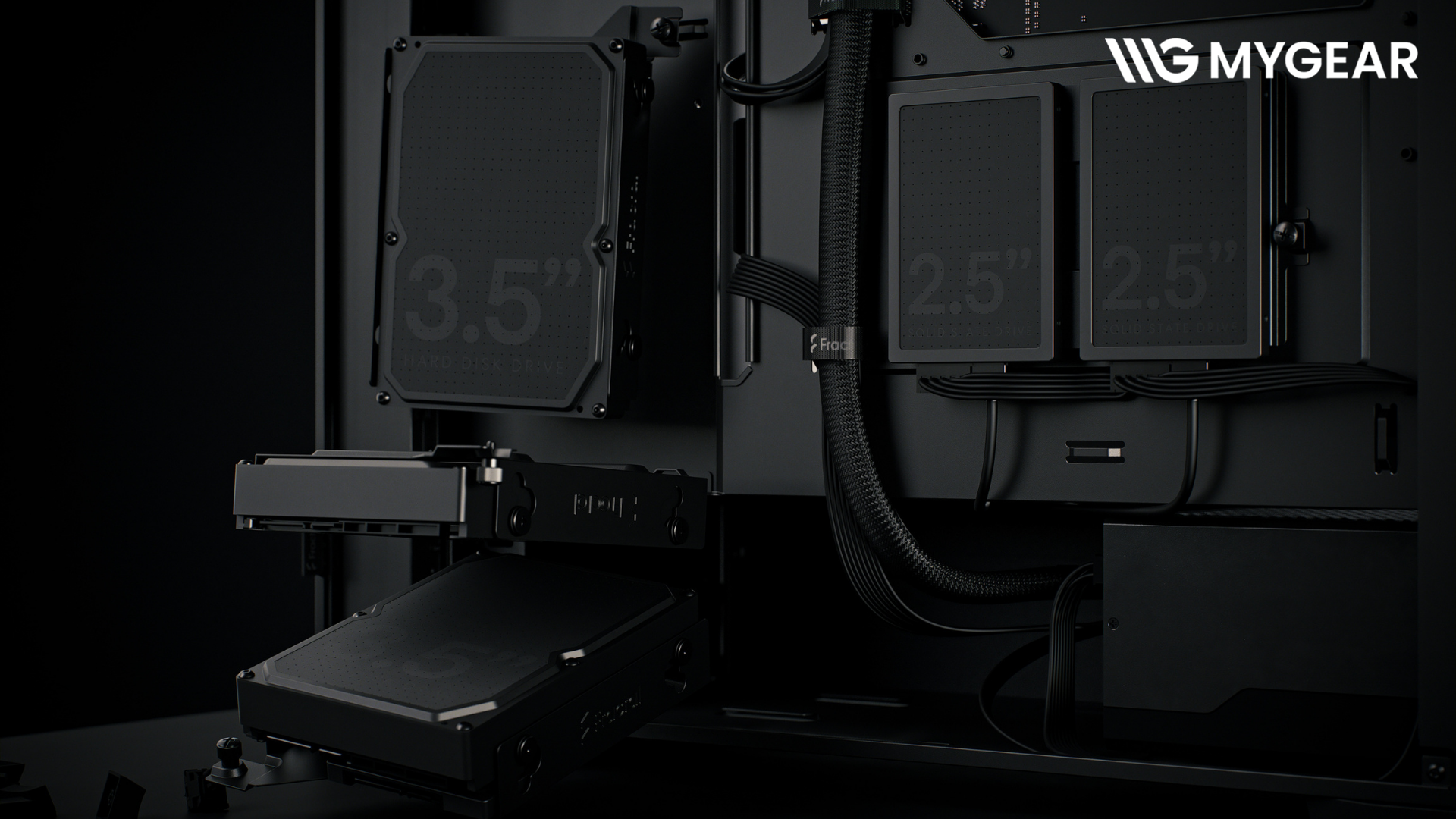 Fractal Design Pop XL Air trắng hỗ trợ 3 khay combo 3.5 inch hoặc 2.5 inch, 4 khay SSD 2.5 inch và 2 khay ODD 5.25 inch. Khoang ODD được thiết kế ẩn kèm ngăn kéo từ tính, vừa tiện dụng vừa giữ tổng thể gọn gàng.