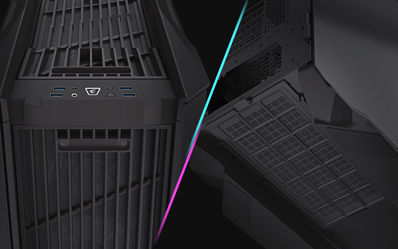 Tích hợp lưới lọc bụi ở trên, dưới và mặt trước, case GIGABYTE ATX giúp hạn chế bụi bẩn xâm nhập, đảm bảo linh kiện bên trong luôn sạch sẽ và hoạt động ổn định lâu dài.