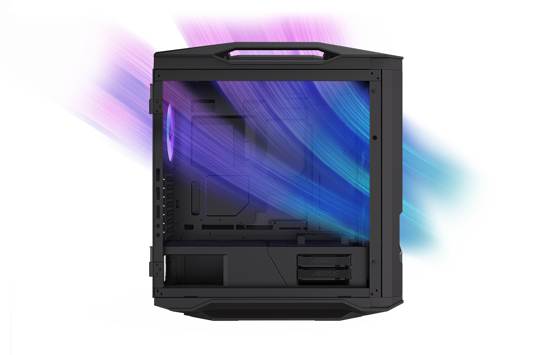 Mặt hông vỏ case kính cường lực GIGABYTE AORUS AC601 được thiết kế dạng full-size, giúp bạn dễ dàng phô diễn toàn bộ hệ thống phần cứng bên trong từ card đồ họa, mainboard, RAM RGB cho đến tản nhiệt nước custom.