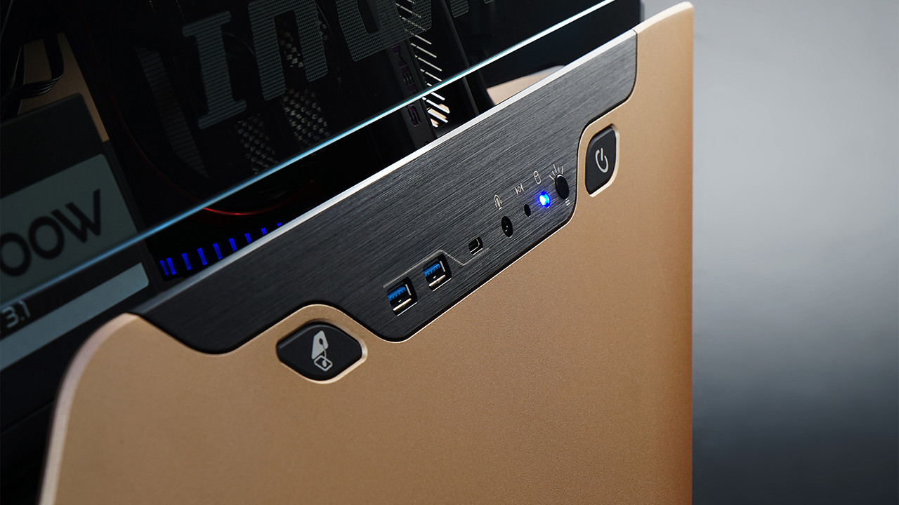 Cả hai mặt hông của InWin Infinite Full Tower đều được làm từ kính cường lực uốn cong tối màu, giúp bạn dễ dàng show off hệ thống RGB, loop nước custom, hoặc các linh kiện cao cấp bên trong. Mặt trước được thiết kế dạng panel tối giản, màn hình kính dạ quang kết hợp cùng hệ thống ARGB LED tích hợp, tạo hiệu ứng ánh sáng bắt mắt, đậm chất gaming.