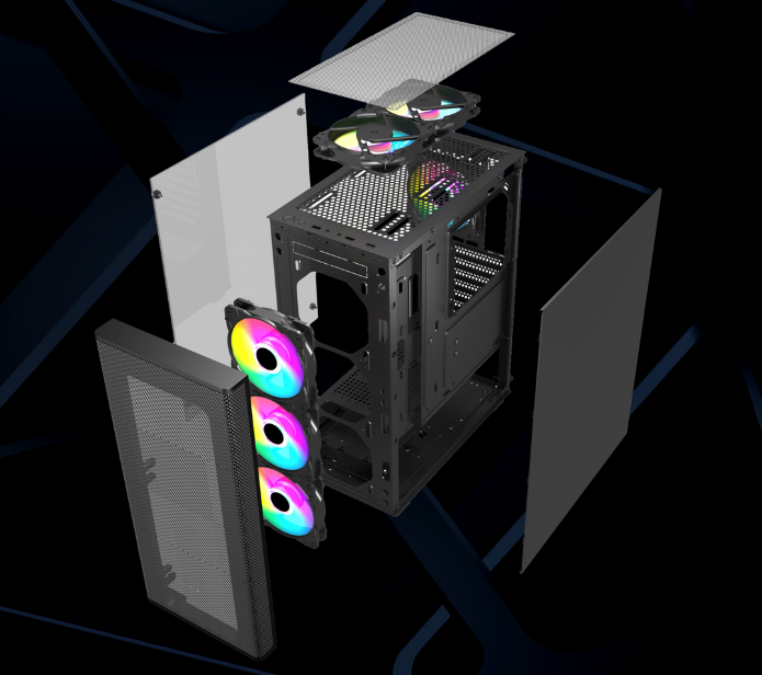 Mặt sau 1x120mm Mặt trước 3x120mm RGB Mặt trên 2x120mm Dưới 2x120mm |