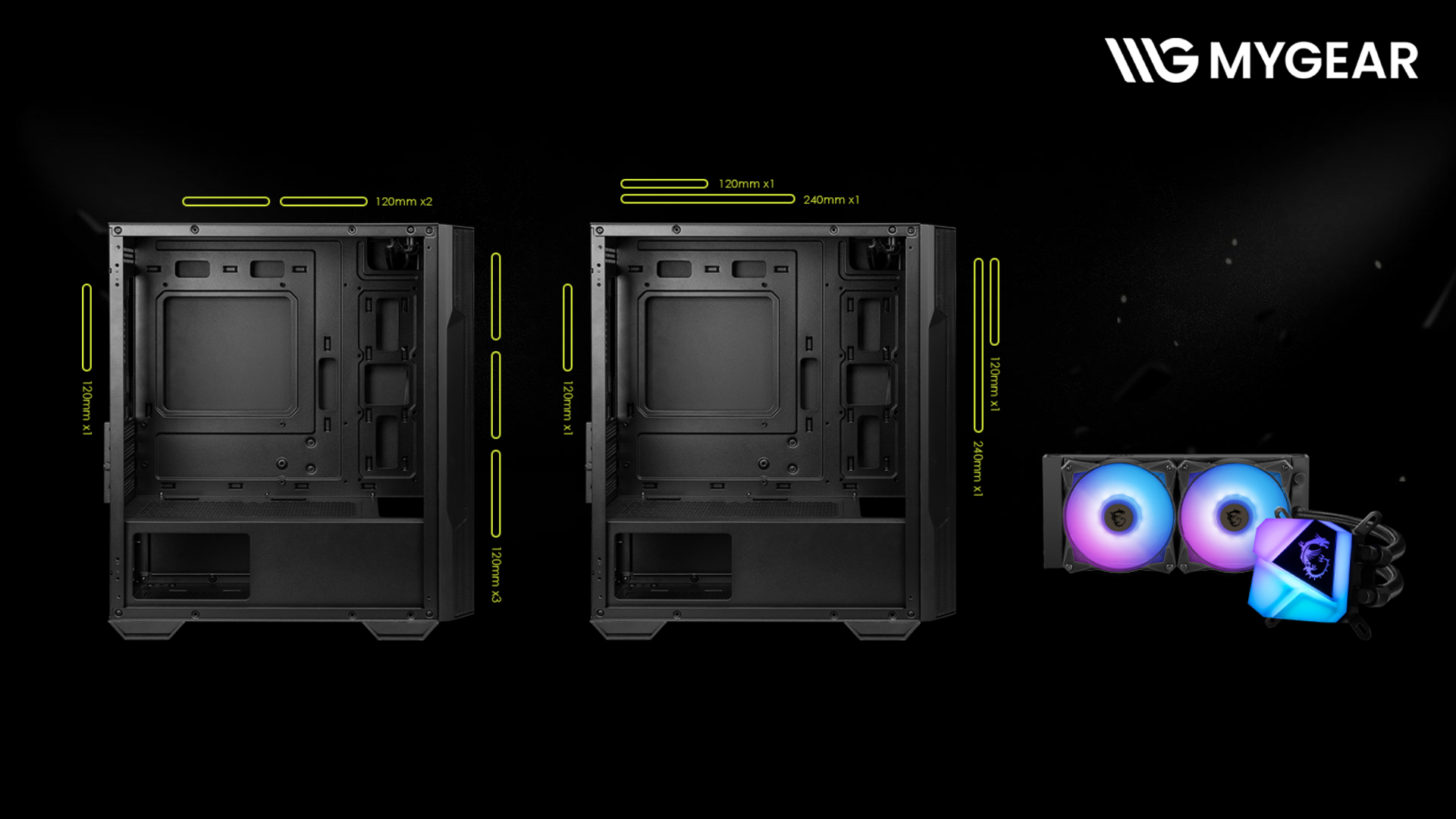 | Quạt lắp sẵn | Trước: 3 x 120mm Auto-RGB, Sau: 1 x 120mm Auto-RGB |