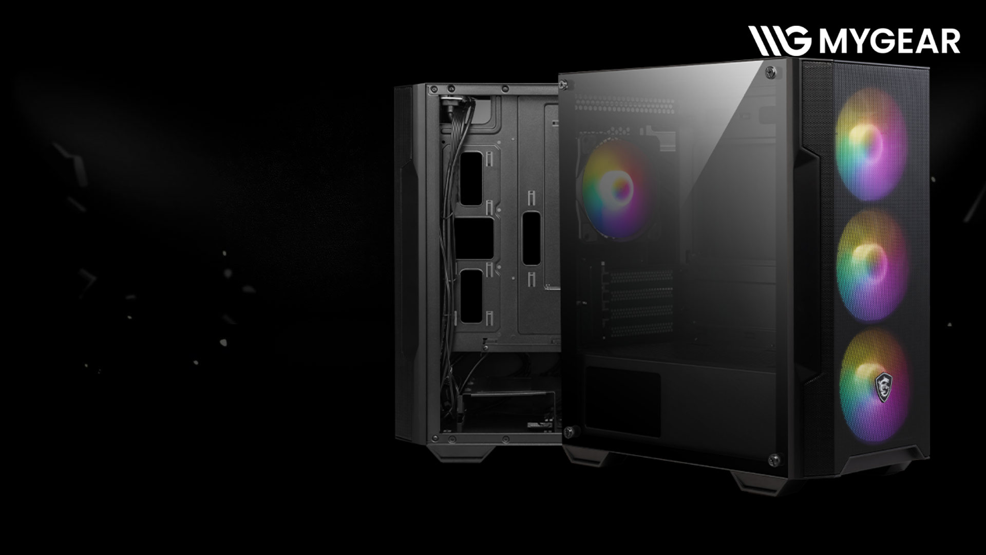 Vỏ case MSI MAG FORGE M100A cho thấy sự tiện lợi nhờ không gian bố trí hợp lý. Hệ thống 4 quạt RGB lắp sẵn giúp tiết kiệm chi phí và đảm bảo luồng khí tốt ngay từ đầu.
